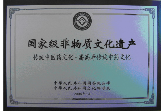 “潘高壽傳統中藥文化”國家級非物質文化遺產標牌