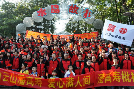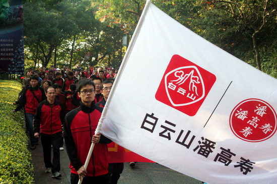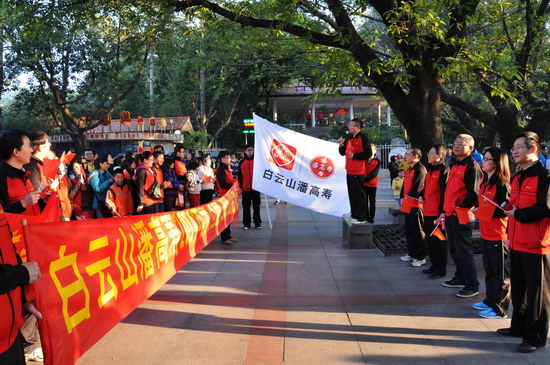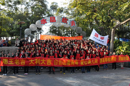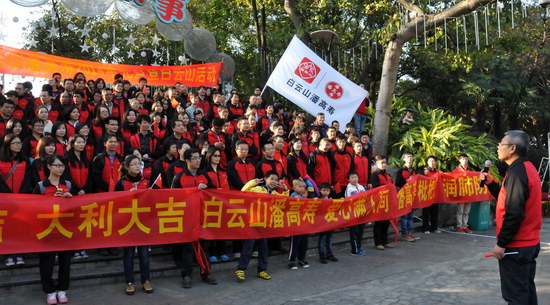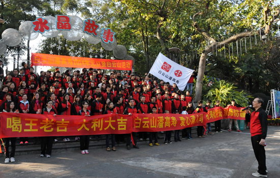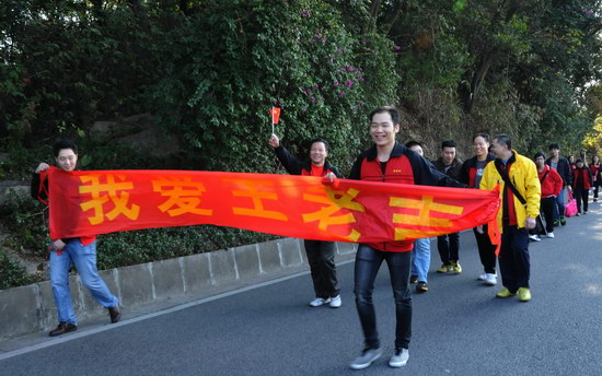 山頂公園上,憑歌寄意,“團結就是力量”、“走進新時代”……歌聲響徹白云之巔,表達出白云山潘高壽人的團結一致、豪情萬丈、信心滿懷。欣賞風景,“踏破青山人未老,風景這邊獨好”,登高能讓我們感受到歷經艱難達到巔峰后的獨特境界和樂趣;宣傳造勢,我們拉起“喝王老吉大利大吉”、“白云山潘高壽 愛心滿人間”、“潘高壽枇杷膏 潤肺防霾”的醒目橫幅,為王老吉大健康、為百年潘高壽品牌造勢。