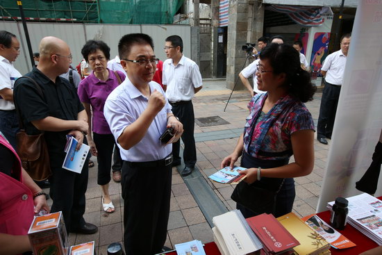 簡短的啟動儀式后,市委宣傳部副部長伍第政參觀了服務(wù)日活動現(xiàn)場。在潘高壽展位前,伍部長稱贊潘高壽作為百年老字號,秉承“積功累德、濟(jì)人濟(jì)世”的宗旨,一直專注養(yǎng)肺護(hù)肺事業(yè),關(guān)愛市民呼吸健康,服務(wù)于市民的健康養(yǎng)生。他還勉勵潘高壽人要發(fā)揮企業(yè)文化軟實力,不斷創(chuàng)新發(fā)展,做“高壽”企業(yè)。
