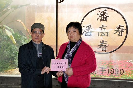 春節前,上級黨組織、工會給我司困難黨員、員工送來了溫暖和關懷。廣藥集團總經理助理黎洪、工會副主席陸青一行慰問了廣東省勞動模范、我司老領導彭文協,廣藥集團黨委、工會分別慰問了我司困難黨員楊紅燕和患重病員工。番禺區東環街工會慰問了我司困難員工楊紅燕和周先佳,并送上慰問品、慰問金和新春的祝愿。