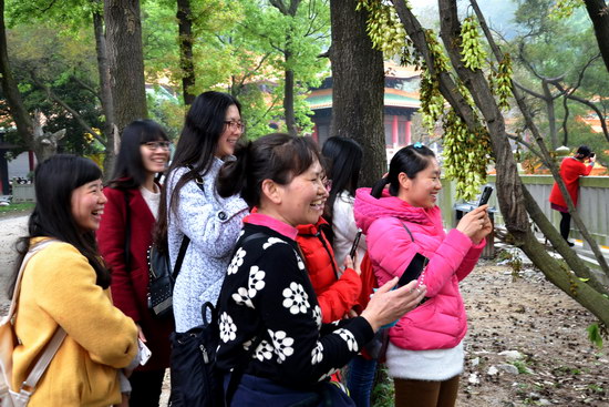 煙霧朦朦,綿綿的春雨為活動增添了幾份雨趣。活動的第一站是圭峰山國家森林公園,公園內(nèi)秀峰挺拔,林木蔥蘢,挺秀的圭峰、蜿蜒的云峰,交匯中擁出世外桃源般的綠護屏,大家三五成群,一邊欣賞春天的美景,一邊呼吸著大自然的清新空氣,在細(xì)雨籠罩下,盡情享受這情深深雨朦朦的意境。