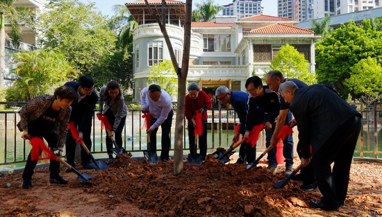 活動現(xiàn)場,郭蘭英老師與白云山潘高壽董事長、總經理楊東升,黨委書記蘇廣豐,紀委書記王靜文,副總經理劉永忠、盧其福,監(jiān)事會主席、工會主席陶躍良一同植下“無憂樹”。郭蘭英藝術發(fā)展基金會郭世珍副會長、郭文理事、歐陽海妮秘書,郭蘭英藝術學校校友會會長孫霏霏、劉小聰、副會長陳昊等共同參與。