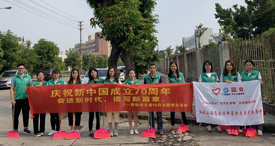 10月26日是環(huán)衛(wèi)工人節(jié),為號(hào)召大家尊重環(huán)衛(wèi)工人勞動(dòng),關(guān)注城市建設(shè),樹(shù)立環(huán)衛(wèi)風(fēng)尚,支持環(huán)衛(wèi)垃圾分類(lèi)工作,2019年10月25日,營(yíng)銷(xiāo)黨支部聯(lián)合營(yíng)銷(xiāo)團(tuán)支部開(kāi)展主題為“尊重環(huán)衛(wèi)工人勞動(dòng),垃圾分類(lèi)文明同行”的黨日活動(dòng),召集支部在司黨員和團(tuán)員代表作為環(huán)保志愿者對(duì)天保路段進(jìn)行清掃并將垃圾進(jìn)行分類(lèi)處理。