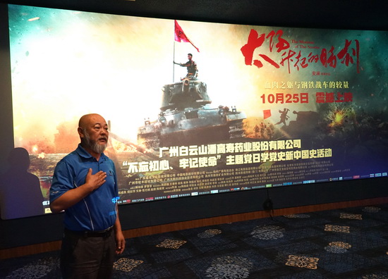 2019年11月15日,白云山潘高壽黨委組織開展“不忘初心、牢記使命”主題黨日學(xué)黨史新中國史活動(dòng),60余名黨員代表共同觀看了愛國主義電影《太陽升起的時(shí)刻》,并邀請(qǐng)影片創(chuàng)作團(tuán)隊(duì)執(zhí)行監(jiān)制邢龍先生分享創(chuàng)作感受。